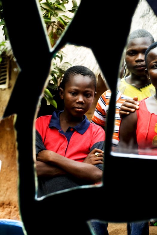 Pour Jean Luc Dubin, la photo peut jouer comme un mécanisme d’appropriation de soi. Son expérience de portraitiste l’ayant poussé à réaliser que le modèle passe de sujet à objet derrière l’objectif, Jean-Luc Dubin incite les individus à reprendre le contrôle de leur image. Dans la série du Piège à reflets, lors d’une résidence au Centre Culturel Français de Cotonou, les béninois ont pu composer leur propre portrait en maîtrisant l’image renvoyée par des fragments de miroirs, fixés sur des toiles à velcro. Dans cet « espace de réflexion », le photographe et le modèle sont solidaires de l’œuvre. De la même façon, le projet photo du « Village Pilote » à Dakar a permis aux jeunes encadrés par cette ONG de refondre leur identité en créant des portraits cubistes d’eux-mêmes, à partir de photos découpées en morceaux. Jean Luc Dubin expérimente ce procédé depuis huit ans en art thérapie, permettant aux jeunes « fragmentés dans leur tête » de déconstruire le regard qu’on leur porte pour recomposer, ou simplement décomposer, leur identité. Comme les polaroïds mosaïques de David Hockney, Jean Luc Dubin offre la possibilité de se voir sous des angles différents pour mieux s’apprivoiser.